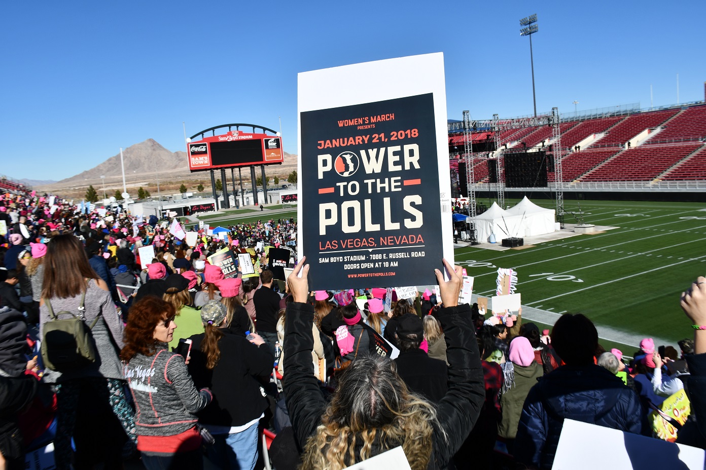 The one-year anniversary of the Women’s March titled “Power to the Polls” brought boisterous crowds to Sam Boyd Stadium in Las Vegas, where many expressed their disdain for the Trump administration and the political gridlock in Washington, D.C. with the colorful display of signs and outfits.